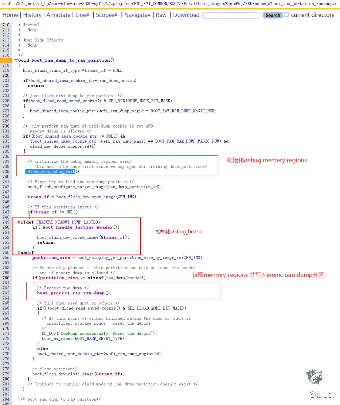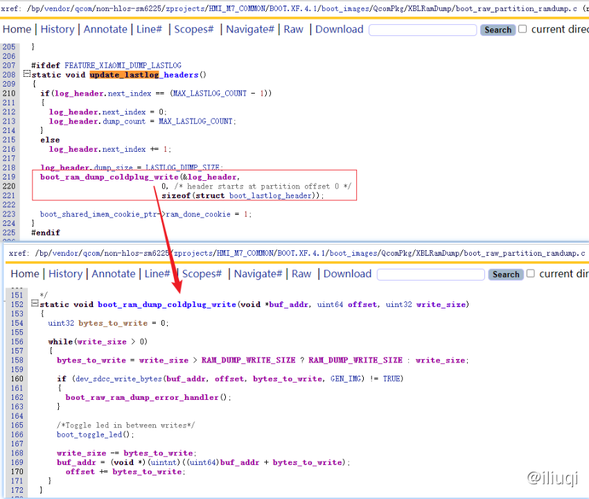 从高通Android启动代码流程分析(SBL->ABL) 可知,在开机过程中,代码会执行到boot_dload_check()->boot_dload_entry,而本节从此函数开始介绍mimidump的xbl流程。