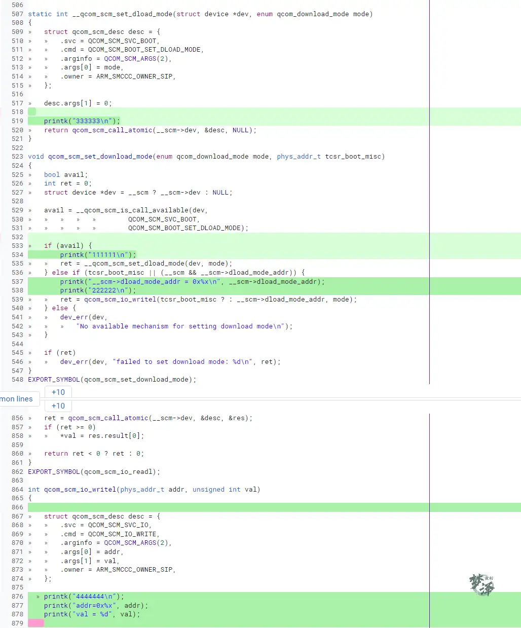 adb shell "cat /sys/kernel/dload/emmc_dload"