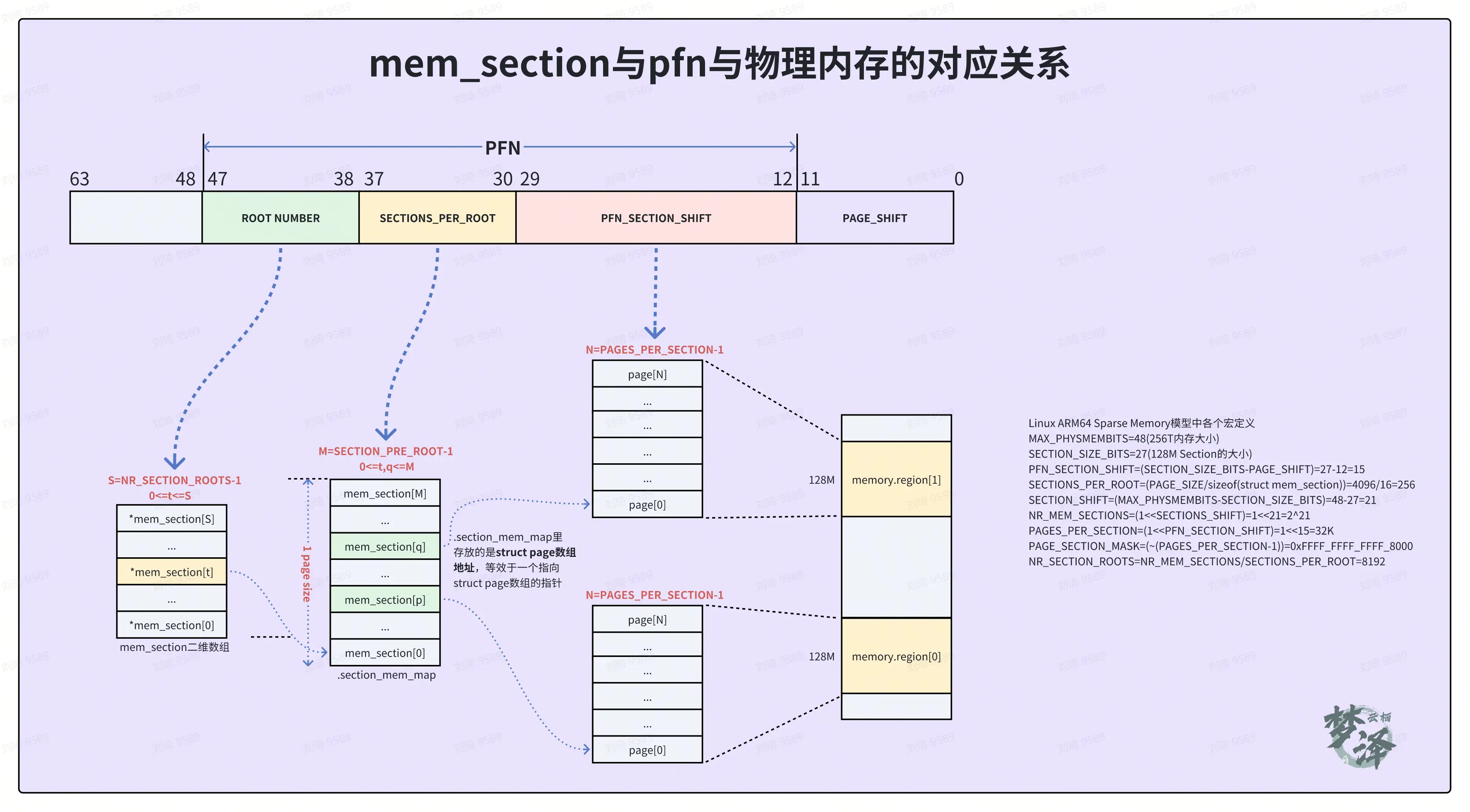 在 Sparse Memory模型中,section是管理内存 online/offline的最小内存单元,在 ARM64中,section的大小为1G,而在Linux内核中,通过一个全局的二维数组 struct mem_section **mem_section来维护映射关系。
